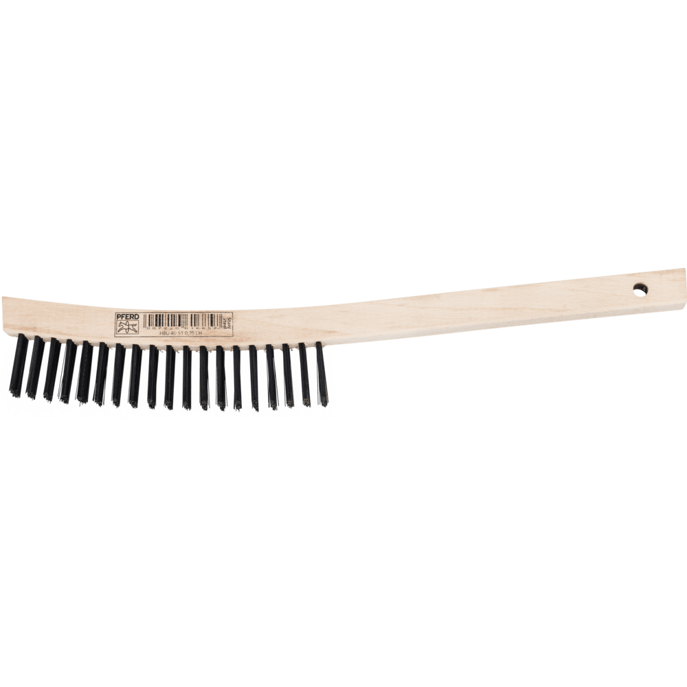 PFERD TOOLS ponúka rozsiahly sortiment škrabacích štetcov s rôznymi tvarmi a materiálmi vlákien. Vhodné na čistenie, odhrdzovanie a čistenie zvarových švov a povrchov. Extra dlhá rukoväť. Oceľové drôty sú najbežnejším materiálom vlákien. Štetce s oceľovými drôtmi ako materiálom vlákien sú obzvlášť vhodné na prácu na povrchoch a odhrotovanie. Špeciálny drôt PFERD TOOLS má vysokú pevnosť v ťahu a únosnosť ohybu. To zabezpečuje optimálne opotrebovanie drôtu, ako aj dlhú životnosť náradia, aj pri extrémnych aplikáciách čistenia. Oceľové drôty odolávajú teplotám až do 300 °C.