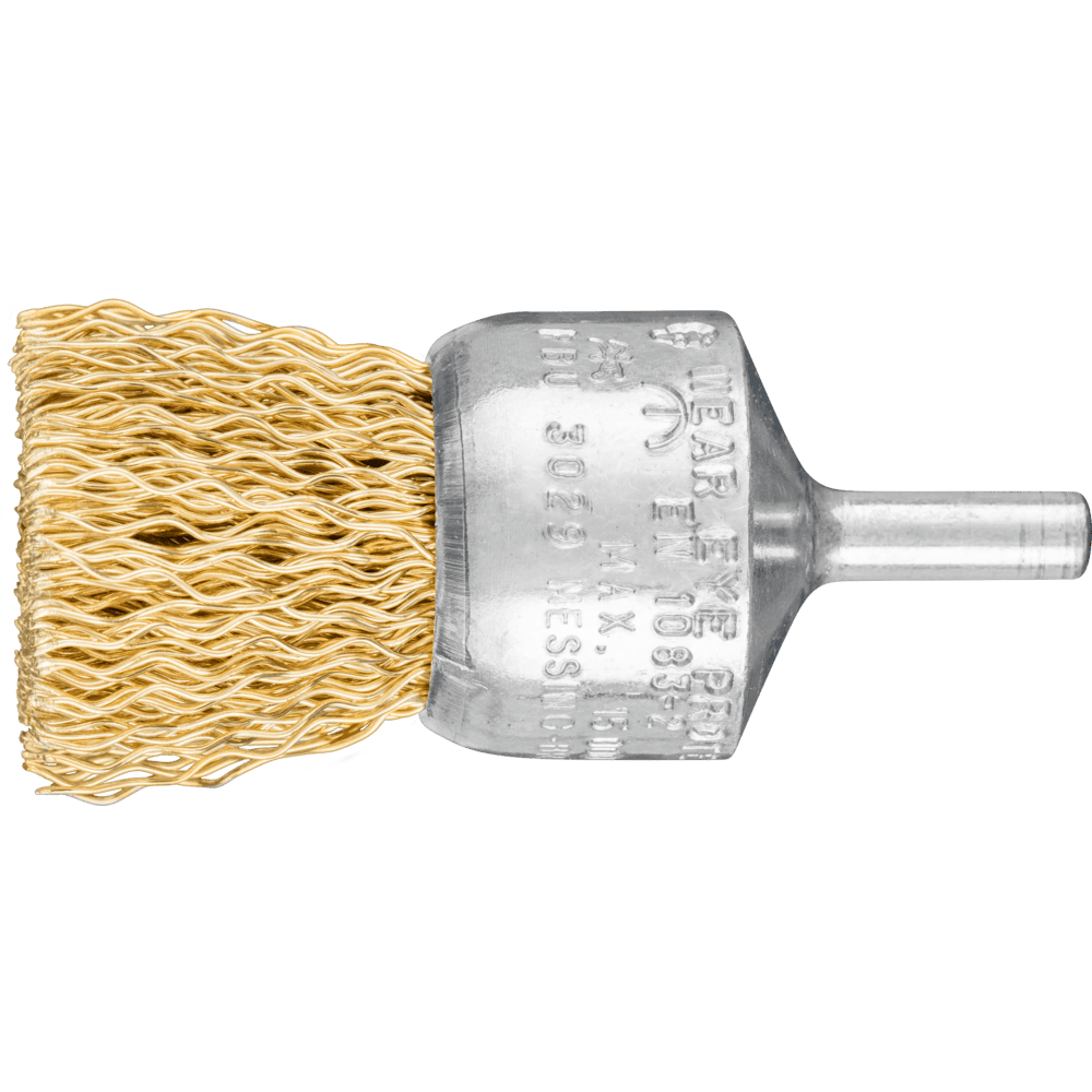 Vhodné na jemné čistenie, ako je odhrotovanie, čistenie a odrezávanie hrdze. Kefy s mosadznými drôtmi sú vhodné na špecifické aplikácie, ako je povrchová úprava na pracovných kusoch vyrobených z medi a mosadze. V porovnaní s oceľovými drôtmi je mosadzný drôt mäkší a flexibilnejší. Pre všetky kefy s mosadzným drôtom používa PFERD TOOLS kvalitu drôtu CuZn37. Mosadzný drôt odoláva teplotám až do 180 °C.