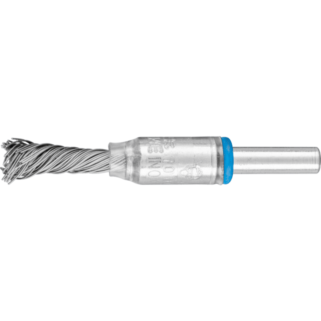 Obzvlášť flexibilný kefa s jedným uzlom pre špeciálne aplikácie. Kefa s plastovým krytom. Aby sa splnili osobitné požiadavky na prácu s nehrdzavejúcou oceľou (INOX), PFERD TOOLS používa drôtovú kvalitu 1.4310 (V2A) pre všetky INOX kefy. Praktické skúsenosti z priemyslu ukázali, že to ponúka veľmi dobrú odolnosť voči korózii s optimálnou životnosťou nástroja. Všetky PFERD TOOLS kefy s INOX vláknami sú farebne označené modrou farbou a sú vhodné na použitie na všetkých nehrdzavejúcich oceľach (INOX), ako je V4A. Drôtová kvalita 1.4310 má tendenciu stať sa feromagnetickou pri studenom spracovaní; t.j. môže byť priťahovaná magnetmi. Dôvodom je zmena mikroštruktúry spôsobená deformáciou (napr. počas procesu ťahania drôtu). To nemá žiadny vplyv na kvalitu a odolnosť voči korózii INOX vlákna. Vlákno je stále odolné voči korózii. Drôt z nehrdzavejúcej ocele (INOX) odoláva teplotám až do 450 °C.