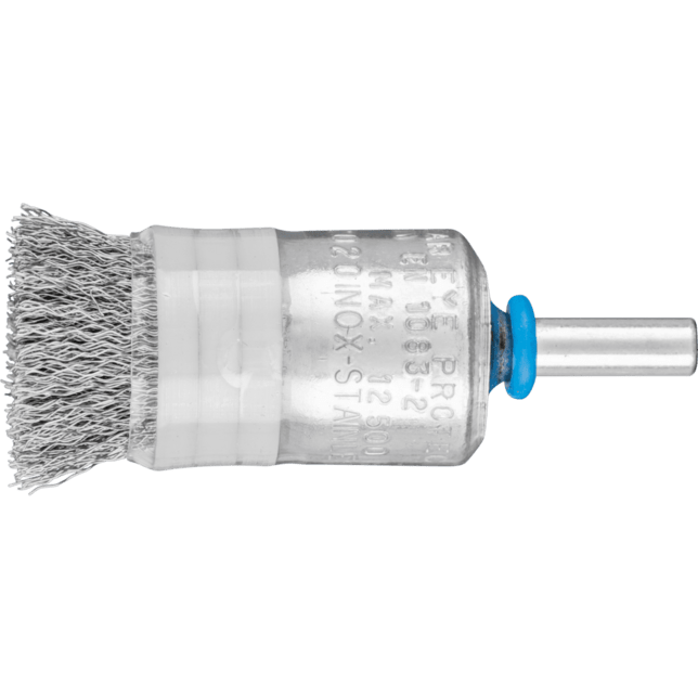 Vhodné na jemné brúsenie, ako je odhrotovanie, čistenie a odrezávanie hrdze. Konečná kefa s plastovým krytom. Aby sa splnili osobitné požiadavky na prácu s nehrdzavejúcou oceľou (INOX), PFERD TOOLS používa drôtovú kvalitu 1.4310 (V2A) pre všetky INOX kefy. Praktické skúsenosti z priemyslu ukázali, že to ponúka veľmi dobrú odolnosť voči korózii s optimálnou životnosťou nástroja. Všetky kefy PFERD TOOLS s INOX vláknami sú farebne označené modrou farbou a sú vhodné na použitie na všetkých nehrdzavejúcich oceľach (INOX), ako je V4A. Drôtová kvalita 1.4310 má tendenciu stať sa ferromagnetickou pri studenom spracovaní; t.j. môže byť priťahovaná magnetmi. Dôvodom je zmena mikroštruktúry spôsobená deformáciou (napr. počas procesu ťahania drôtu). To nemá žiadny vplyv na kvalitu a odolnosť voči korózii INOX vlákna. Vlákno je stále odolné voči korózii. Drôt z nehrdzavejúcej ocele (INOX) odoláva teplotám až do 450 °C.