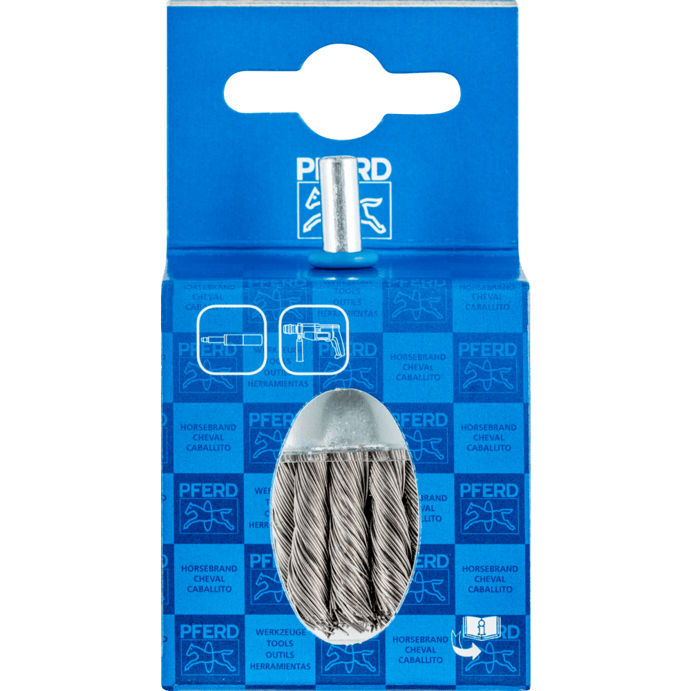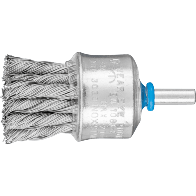 Aggresívny štetec. Vhodný na stredne ťažké čistenie, ako je odhrotovanie, čistenie, odrezávanie hrdze a odstraňovanie vodného kameňa, ako aj na odstraňovanie striekajúcej farby. Konečný štetec s plastovým krytom tela štetca. Aby sa splnili osobitné požiadavky na prácu s nehrdzavejúcou oceľou (INOX), PFERD TOOLS používa drôtovú kvalitu 1.4310 (V2A) pre všetky INOX štetce. Praktické skúsenosti z priemyslu ukázali, že to ponúka veľmi dobrú odolnosť voči korózii s optimálnou životnosťou nástroja. Všetky štetce PFERD TOOLS s INOX vláknami sú farebne označené modrou farbou a sú vhodné na použitie na všetkých nehrdzavejúcich oceľach (INOX), ako je V4A. Drôtová kvalita 1.4310 má tendenciu stať sa feromagnetickou pri studenom spracovaní; t.j. môže byť priťahovaná magnetmi. Dôvodom je zmena mikroštruktúry spôsobená deformáciou (napr. počas procesu ťahania drôtu). To nemá žiadny vplyv na kvalitu a odolnosť voči korózii INOX vlákna. Vlákno je stále odolné voči korózii. Drôt z nehrdzavejúcej ocele (INOX) odoláva teplotám až do 450 °C.