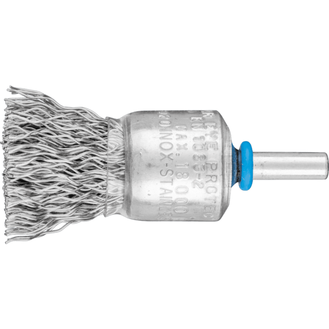Vhodné na jemné čistenie, ako je odhrotovanie, čistenie a odhrdzovanie. Konečná kefa s plastovým krytom. Aby sa splnili osobitné požiadavky na prácu s nehrdzavejúcou oceľou (INOX), PFERD TOOLS používa drôtovú kvalitu 1.4310 (V2A) pre všetky INOX kefy. Praktické skúsenosti z priemyslu ukázali, že to ponúka veľmi dobrú odolnosť voči korózii s optimálnou životnosťou nástroja. Všetky kefy PFERD TOOLS s INOX vláknami sú farebne označené modrou farbou a sú vhodné na použitie na všetkých nehrdzavejúcich oceľach (INOX), ako je V4A. Drôtová kvalita 1.4310 má tendenciu stať sa feromagnetickou pri studenom spracovaní; t.j. môže byť priťahovaná magnetmi. Dôvodom je zmena mikroštruktúry spôsobená deformáciou (napr. počas procesu ťahania drôtu). To nemá žiadny vplyv na kvalitu a odolnosť voči korózii INOX vlákna. Vlákno je stále odolné voči korózii. Drôt z nehrdzavejúcej ocele (INOX) odoláva teplotám až do 450 °C.