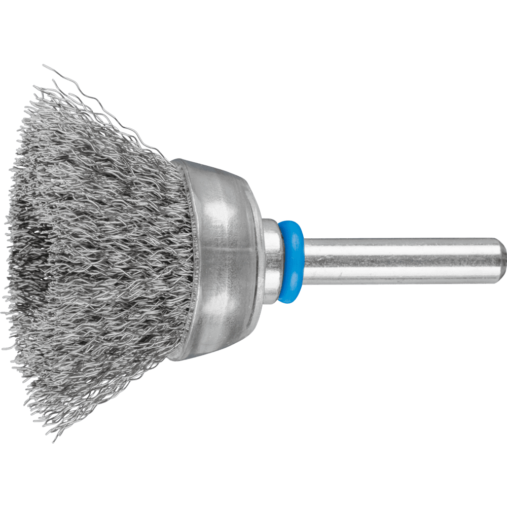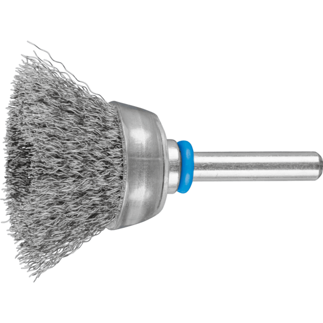 Všeobecne vhodné na čistenie, odhrdzovanie a vyhladzovanie, ako aj na odstraňovanie korózie a farby. Obzvlášť vhodné na čistenie veľkých, plochých a ľahko prístupných povrchov vďaka použitiu štetca s celou plochou štetca aplikovanou na obrobok. Aby sa splnili osobitné požiadavky na prácu s nerezovou oceľou (INOX), PFERD TOOLS používa drôtovú kvalitu 1.4310 (V2A) pre všetky INOX štetce. Praktické skúsenosti z priemyslu ukázali, že to ponúka veľmi dobrú odolnosť voči korózii s optimálnou životnosťou nástroja. Všetky PFERD TOOLS štetce s INOX vláknami sú farebne kódované na modro a sú vhodné na použitie na všetkých nerezových oceľach (INOX), ako je V4A. Drôtová kvalita 1.4310 má tendenciu stať sa ferromagnetickou pri studenom spracovaní; t.j. môže byť priťahovaná magnetmi. Dôvodom je zmena mikroštruktúry spôsobená deformáciou (napr. počas procesu ťahania drôtu). To nemá žiadny vplyv na kvalitu a odolnosť voči korózii INOX vlákna. Vlákno je stále odolné voči korózii. Nerezový drôt (INOX) odoláva teplotám až do 450 °C. Kónický štetec s plastovým krytom štetca.