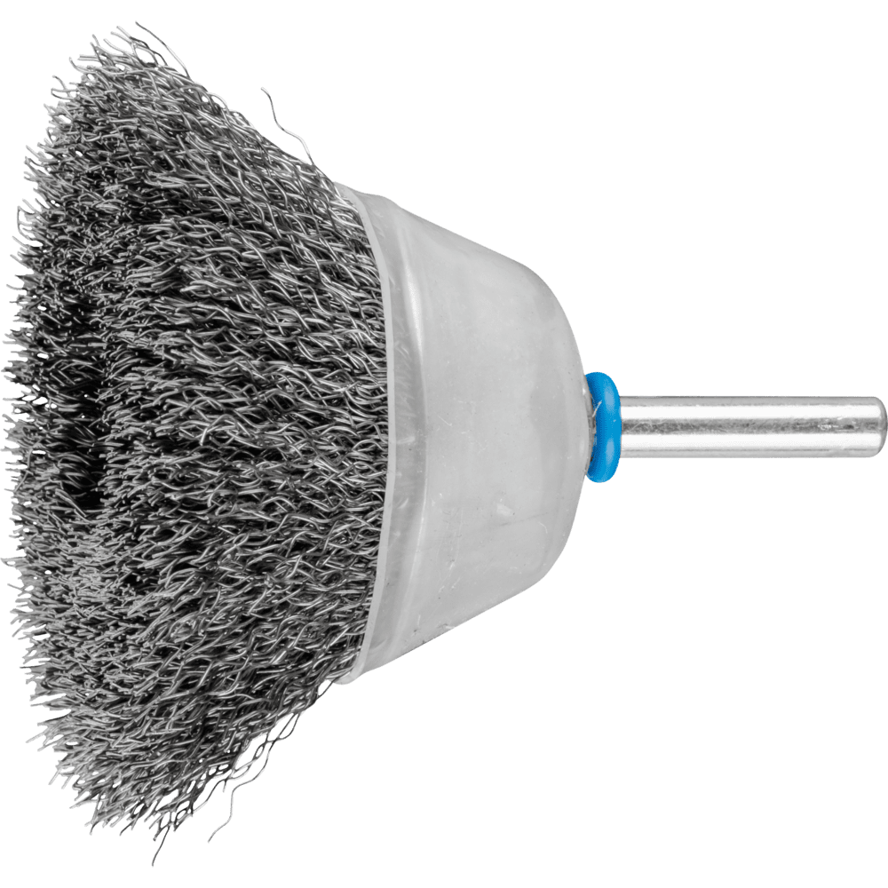 Všeobecne vhodné na čistenie, odhrdzovanie a vyhladzovanie, ako aj na odstraňovanie korózie a farby. Obzvlášť vhodné na čistenie veľkých, plochých a ľahko prístupných povrchov vďaka použitiu štetca s celou plochou na pracovnom kuse. Aby sa splnili osobitné požiadavky na prácu s nerezovou oceľou (INOX), PFERD TOOLS používa drôtovú kvalitu 1.4310 (V2A) pre všetky INOX štetce. Praktické skúsenosti z priemyslu ukázali, že to ponúka veľmi dobrú odolnosť voči korózii s optimálnou životnosťou nástroja. Všetky štetce PFERD TOOLS s INOX vláknami sú farebne označené modrou farbou a sú vhodné na použitie na všetkých nerezových oceľach (INOX), ako je V4A. Drôtová kvalita 1.4310 má tendenciu stať sa feromagnetickou pri studenom spracovaní; t.j. môže byť priťahovaná magnetmi. Dôvodom je zmena mikroštruktúry spôsobená deformáciou (napr. počas procesu ťahania drôtu). To nemá žiadny vplyv na kvalitu a odolnosť voči korózii INOX vlákna. Vlákno je stále odolné voči korózii. Nerezový drôt (INOX) odoláva teplotám až do 450 °C. Kónický štetec s plastovým krytom.