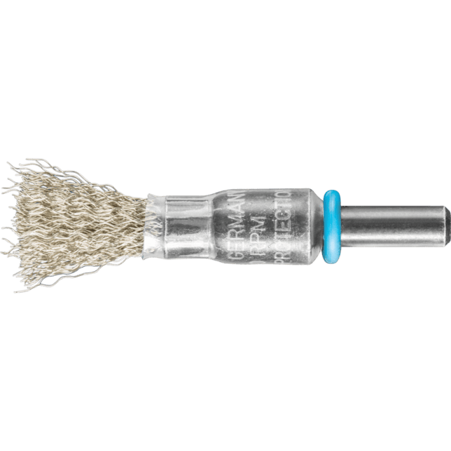 Vhodné na jemné čistenie, ako je odhrotovanie, čistenie a odrezávanie hrdze. Konečná kefa s plastovým krytom. Aby sa splnili osobitné požiadavky na prácu s nehrdzavejúcou oceľou (INOX), PFERD TOOLS používa drôtovú kvalitu 1.4310 (V2A) pre všetky INOX kefy. Praktické skúsenosti z priemyslu ukázali, že to ponúka veľmi dobrú odolnosť voči korózii s optimálnou životnosťou nástroja. Všetky kefy PFERD TOOLS s INOX vláknami sú farebne označené modrou farbou a sú vhodné na použitie na všetkých nehrdzavejúcich oceľach (INOX), ako je V4A. Drôtová kvalita 1.4310 má tendenciu stať sa ferromagnetickou pri studenom spracovaní; t.j. môže byť priťahovaná magnetmi. Dôvodom je zmena mikroštruktúry spôsobená deformáciou (napr. počas procesu ťahania drôtu). To nemá žiadny vplyv na kvalitu a odolnosť voči korózii INOX vlákna. Vlákno je stále odolné voči korózii. Drôt z nehrdzavejúcej ocele (INOX) odoláva teplotám až do 450 °C.
