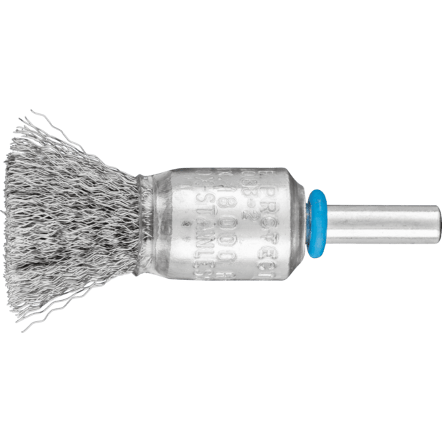 Vhodné na jemné čistenie, ako je odhrotovanie, čistenie a odrezávanie hrdze. Konečná kefa s plastovým krytom. Aby sa splnili osobitné požiadavky na prácu s nehrdzavejúcou oceľou (INOX), PFERD TOOLS používa drôtovú kvalitu 1.4310 (V2A) pre všetky INOX kefy. Praktické skúsenosti z priemyslu ukázali, že to ponúka veľmi dobrú odolnosť voči korózii s optimálnou životnosťou nástroja. Všetky kefy PFERD TOOLS s INOX vláknami sú farebne kódované na modro a sú vhodné na použitie na všetkých nehrdzavejúcich oceľach (INOX), ako je V4A. Drôtová kvalita 1.4310 má tendenciu stať sa feromagnetickou pri studenom spracovaní; t.j. môže byť priťahovaná magnetmi. Dôvodom je zmena mikroštruktúry spôsobená deformáciou (napr. počas procesu ťahania drôtu). To nemá žiadny vplyv na kvalitu a odolnosť voči korózii INOX vlákna. Vlákno je stále odolné voči korózii. Drôt z nehrdzavejúcej ocele (INOX) odoláva teplotám až do 450 °C.
