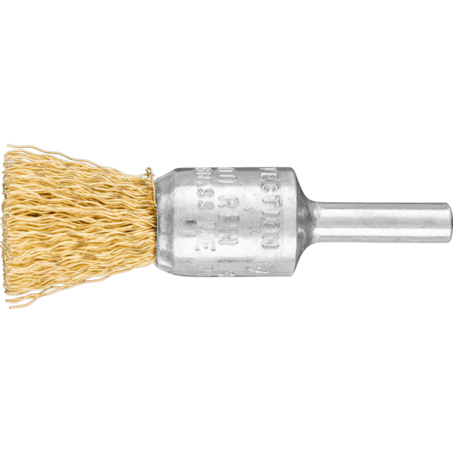 Vhodné na jemné brúsenie, ako je odhrotovanie, čistenie a odrezávanie hrdze. Kefy s mosadznými drôtmi sú vhodné na špecifické aplikácie, ako je povrchová úprava na obrobkoch vyrobených z medi a mosadze. V porovnaní s oceľovými drôtmi je mosadzný drôt mäkší a flexibilnejší. Pre všetky kefy s mosadznými drôtmi používa PFERD TOOLS kvalitu drôtu CuZn37. Mosadzný drôt odoláva teplotám až do 180 °C.