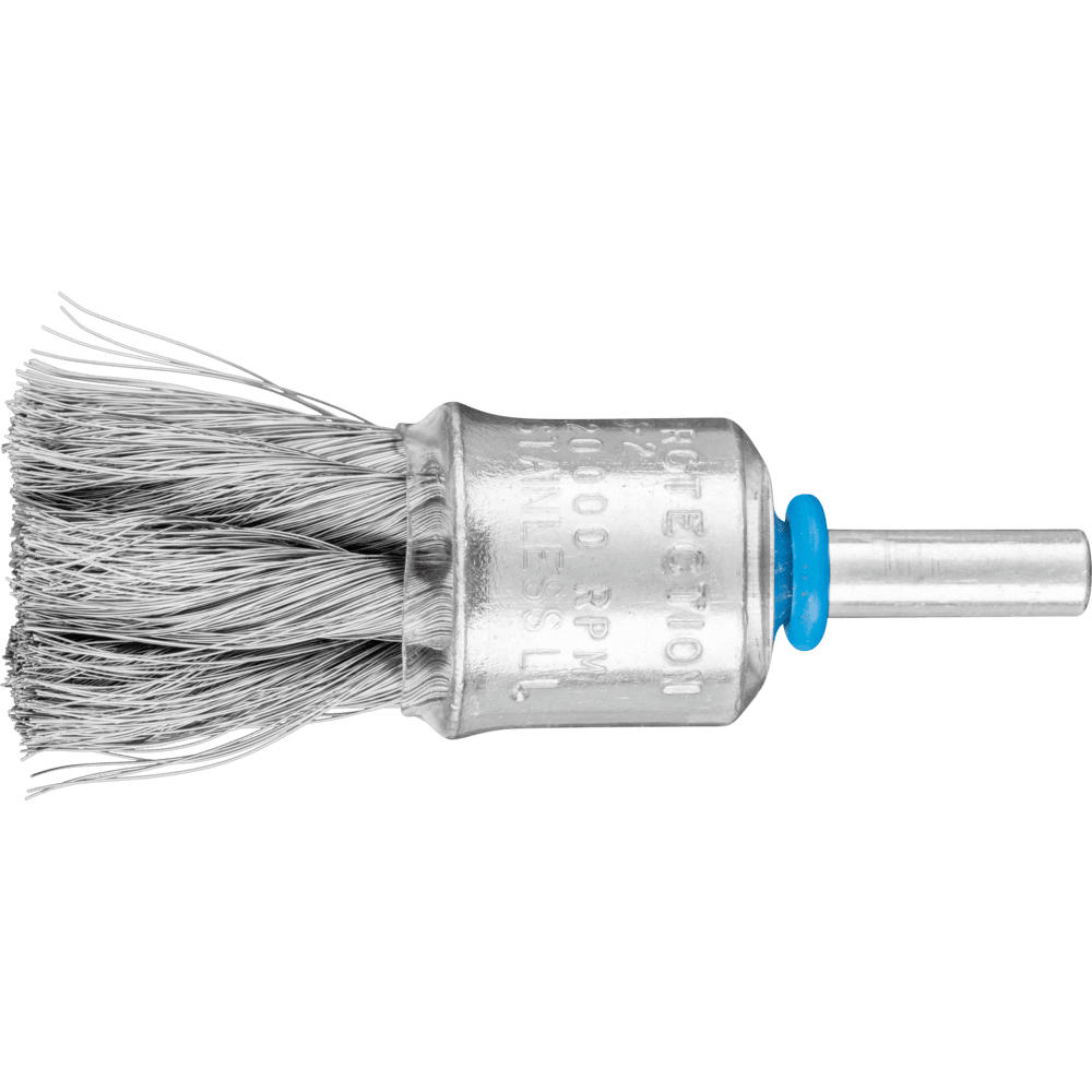 Aggresívny štetec. Vhodný na stredne ťažké čistenie, ako je odhrotovanie, čistenie, odrezávanie hrdze a odstraňovanie vodného kameňa, ako aj na odstraňovanie striekancov. Konečný štetec s plastovým krytom tela štetca. Aby sa splnili osobitné požiadavky na prácu s nehrdzavejúcou oceľou (INOX), PFERD TOOLS používa drôtovú kvalitu 1.4310 (V2A) pre všetky INOX štetce. Praktické skúsenosti z priemyslu ukázali, že to ponúka veľmi dobrú odolnosť voči korózii s optimálnou životnosťou nástroja. Všetky štetce PFERD TOOLS s INOX vláknami sú farebne označené modrou farbou a sú vhodné na použitie na všetkých nehrdzavejúcich oceľach (INOX), ako je V4A. Drôtová kvalita 1.4310 má tendenciu stať sa feromagnetickou v prípade studenej práce; t.j. môže byť priťahovaná magnetmi. Dôvodom je zmena mikroštruktúry spôsobená deformáciou (napr. počas procesu ťahania drôtu). To nemá žiadny vplyv na kvalitu a odolnosť voči korózii INOX vlákna. Vlákno je stále odolné voči korózii. Drôt z nehrdzavejúcej ocele (INOX) odoláva teplotám až do 450 °C.