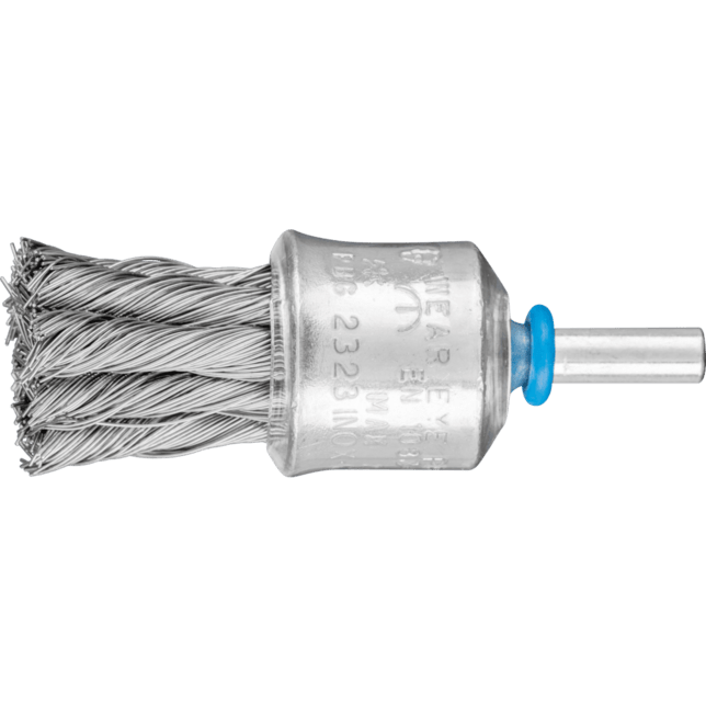 Aggresívny štetec. Vhodný na stredne ťažké čistenie, ako je odhrotovanie, čistenie, odrezávanie hrdze a odstraňovanie vodného kameňa, ako aj na odstraňovanie striekancov. Konečný štetec s plastovým krytom tela štetca. Aby sa splnili osobitné požiadavky na prácu s nehrdzavejúcou oceľou (INOX), PFERD TOOLS používa drôtovú kvalitu 1.4310 (V2A) pre všetky INOX štetce. Praktické skúsenosti z priemyslu ukázali, že to ponúka veľmi dobrú odolnosť voči korózii s optimálnou životnosťou nástroja. Všetky štetce PFERD TOOLS s INOX vláknami sú farebne označené modrou farbou a sú vhodné na použitie na všetkých nehrdzavejúcich oceľach (INOX), ako je V4A. Drôtová kvalita 1.4310 má tendenciu stať sa feromagnetickou pri studenom spracovaní; t.j. môže byť priťahovaná magnetmi. Dôvodom je zmena mikroštruktúry spôsobená deformáciou (napr. počas procesu ťahania drôtu). To nemá žiadny vplyv na kvalitu a odolnosť voči korózii INOX vlákna. Vlákno je stále odolné voči korózii. Drôt z nehrdzavejúcej ocele (INOX) odoláva teplotám až do 450 °C.
