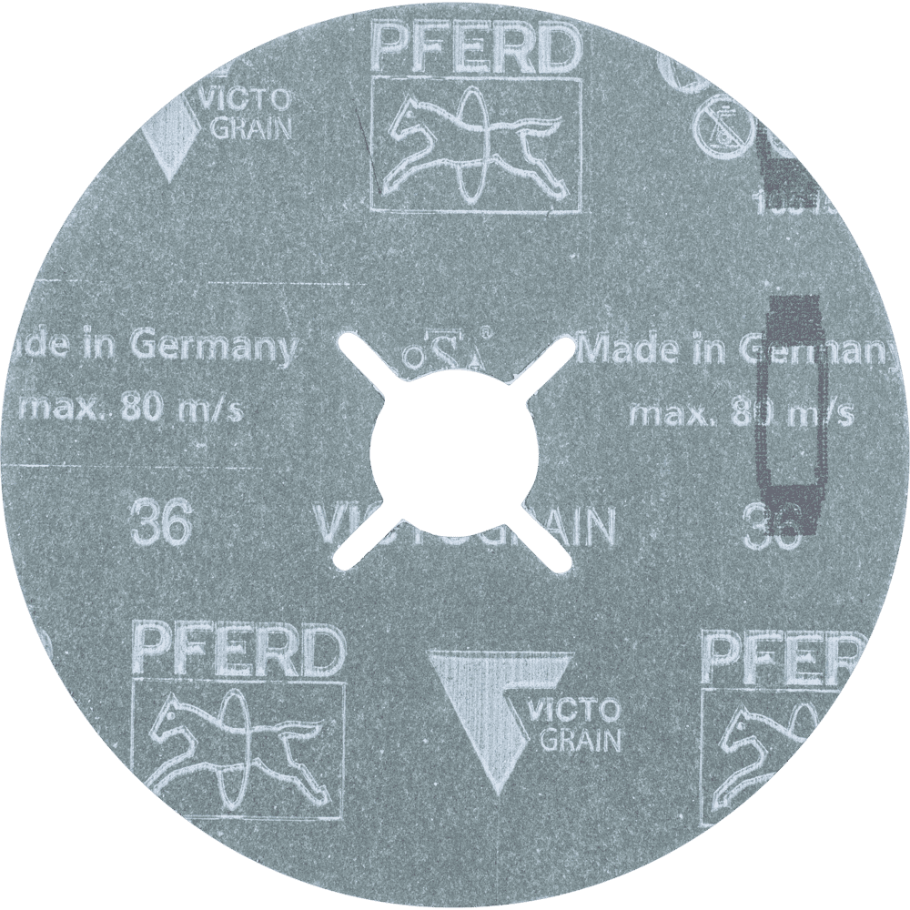 PFERD TOOLS vláknové disky sú vyrábané v súlade s ISO 16057 v tvare A1 verzia F pod označením "vulkanizovaný vláknový disk". Pre maximálne agresívne brúsenie s extrémne dlhou životnosťou náradia a vynikajúcou rýchlosťou odstraňovania materiálu na oceľ a tvrdé materiály. Vynikajúci, neustále vysoký výkon vďaka abrazívnemu zrna VICTOGRAIN. Abrazívne trojuholníky VICTOGRAIN sú pripevnené k podkladu na jednej strane. To znamená, že sú bezpečne upevnené na mieste a spolu so svojím štíhlym dizajnom ponúkajú extrémne veľký priestor na triesky, aby sa ďalej zlepšila efektivita obrábania. Štruktúra trojuholníkového VICTOGRAIN bola tiež špeciálne prispôsobená na maximalizáciu výsledkov. Veľmi malé kryštály vo vnútri trojuholníkov zabezpečujú optimálne vlastnosti opotrebovania, pretože ostré rezné hrany sú vždy vystavené, ale len minimálne množstvo abrazívneho zrna/trojuholník sa odlomí. Kombinovaním všetkých týchto vlastností majú používatelia prospech z konečného, neustáleho výkonu počas chladného brúsenia a extrémne dlhého životnosti náradia spolu s konzistentnou drsnosťou povrchu obrobku.
