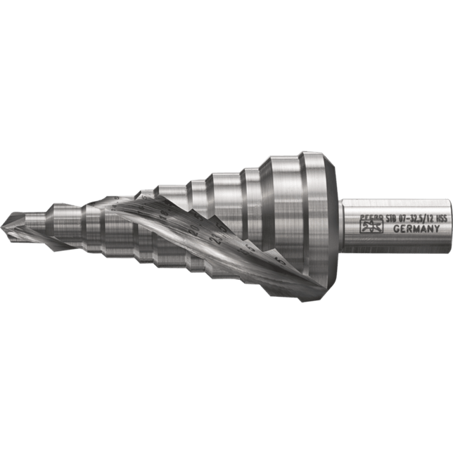 HSS stupňové vrtáky na vŕtanie a odhrotovanie tenkých plechov, rúr a profilov vyrobených z rôznych materiálov. Na zabezpečenie spoľahlivého prenosu krútiaceho momentu majú všetky stupňové vrtáky trojstranný hriadeľ. Navrhnuté pre bežné priemery káblových príchytiek.