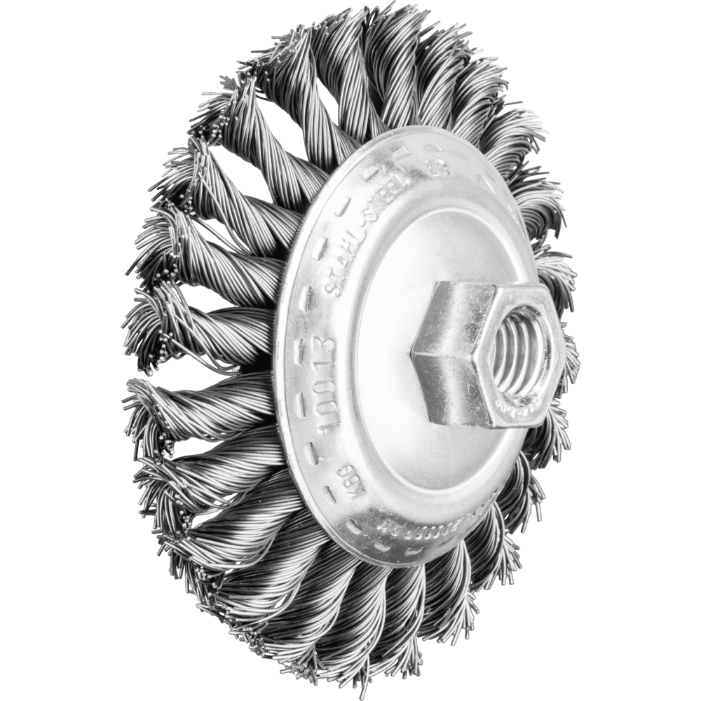Aggresívny štetec. Vynikajúci na ťažké brúsenie, ako je odhrotovanie, čistenie, odrezávanie hrdze a odstraňovanie striekajúceho materiálu. Oceľové drôty sú najbežnejším materiálom vlákien. Štetce s oceľovými drôtmi ako materiálom vlákien sú obzvlášť vhodné na prácu na povrchoch a odhrotovanie. Špeciálny drôt PFERD TOOLS má vysokú pevnosť v ťahu a únosnosť ohybu. To zabezpečuje, že drôt sa opotrebováva optimálnym spôsobom, ako aj dlhú životnosť náradia, aj pri extrémnych aplikáciách brúsenia. Oceľový drôt odoláva teplotám až do 300 °C.