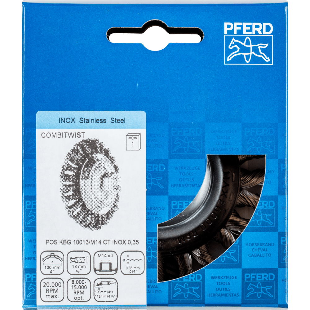 Veľmi agresívny štetec. Vynikajúci na ťažké brúsenie, ako je odhrotovanie, čistenie, odrezávanie hrdze a odstraňovanie usadenín. Aby sa splnili osobitné požiadavky na prácu s nehrdzavejúcou oceľou (INOX), PFERD TOOLS používa drôtovú kvalitu 1.4310 (V2A) pre všetky INOX štetce. Praktické skúsenosti z priemyslu ukázali, že to ponúka veľmi dobrú odolnosť voči korózii s optimálnou životnosťou nástroja. Všetky štetce PFERD TOOLS s INOX vláknami sú farebne kódované na modro a sú vhodné na použitie na všetkých nehrdzavejúcich oceľach (INOX), ako je V4A. Drôtová kvalita 1.4310 má tendenciu stať sa ferromagnetickou pri studenom spracovaní; t.j. môže byť priťahovaná magnetmi. Dôvodom je zmena mikroštruktúry spôsobená deformáciou (napr. počas procesu ťahania drôtu). To nemá žiadny vplyv na kvalitu a odolnosť voči korózii INOX vlákna. Vlákno je stále odolné voči korózii. Drôt z nehrdzavejúcej ocele (INOX) odoláva teplotám až do 450 °C.