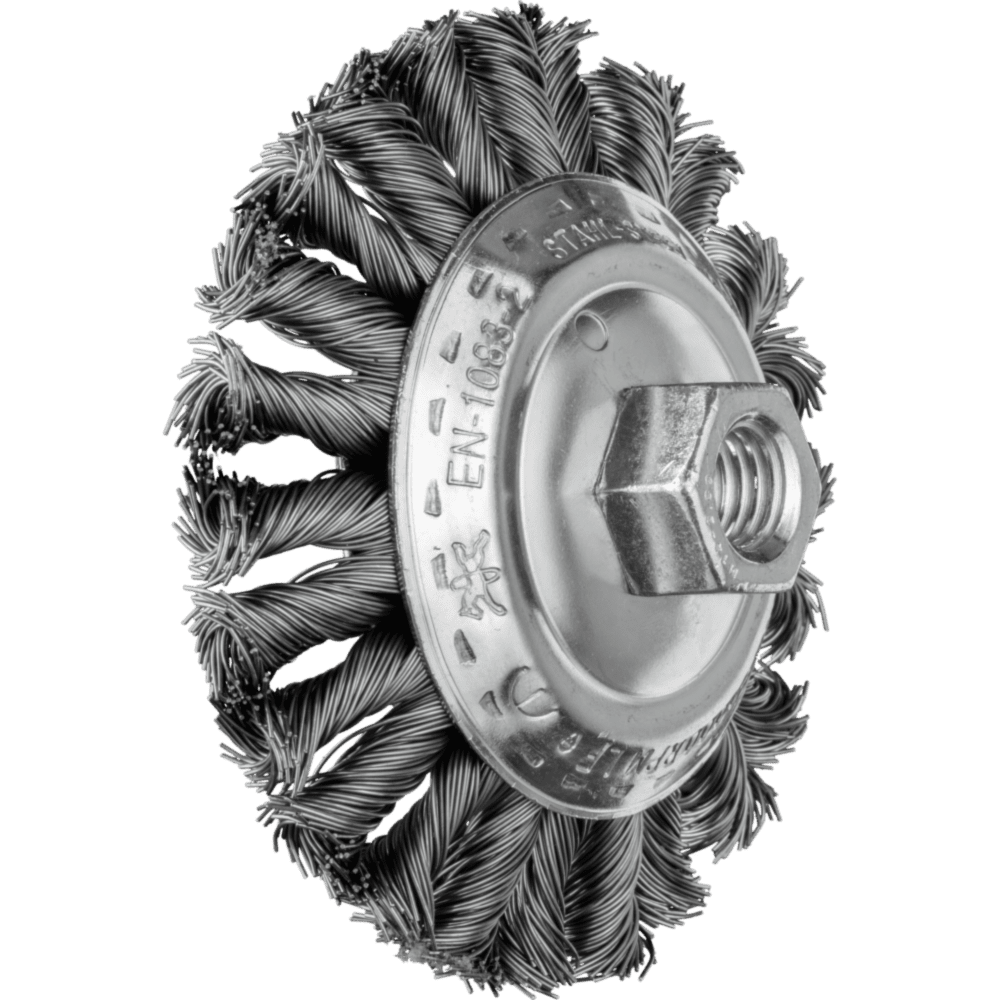 - Agresívny brúsiaci efekt vďaka veľmi pevným drôteným uzlom.