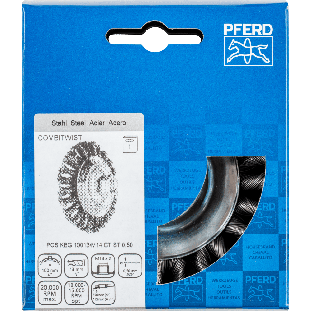 Veľmi agresívny štetec. Vynikajúci na ťažké brúsenie, ako je odhrotovanie, čistenie, odrezávanie hrdze a odstraňovanie usadenín. Oceľové drôty sú najbežnejším materiálom vlákien. Štetce s oceľovými drôtmi ako materiálom vlákien sú obzvlášť vhodné na prácu na povrchoch a odhrotovanie. Špeciálny drôt PFERD TOOLS má vysokú pevnosť v ťahu a únosnosť ohybu. To zabezpečuje, že drôt sa opotrebováva optimálnym spôsobom, ako aj dlhú životnosť náradia, aj pri extrémnych aplikáciách brúsenia. Oceľový drôt odoláva teplotám až do 300 °C.