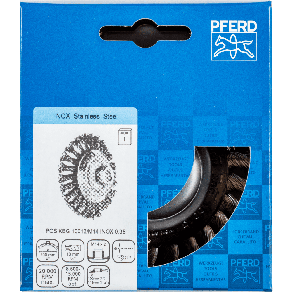 Aggresívny štetec. Vynikajúci na ťažké brúsenie, ako je odhrotovanie, čistenie, odhrdzavenie a odstraňovanie usadenín. Aby sa splnili osobitné požiadavky na prácu s nehrdzavejúcou oceľou (INOX), PFERD TOOLS používa drôtovú kvalitu 1.4310 (V2A) pre všetky INOX štetce. Praktické skúsenosti z priemyslu ukázali, že to ponúka veľmi dobrú odolnosť voči korózii s optimálnou životnosťou nástroja. Všetky štetce PFERD TOOLS s INOX vláknami sú farebne označené modrou farbou a sú vhodné na použitie na všetkých nehrdzavejúcich oceľach (INOX), ako je V4A. Drôtová kvalita 1.4310 má tendenciu stať sa feromagnetickou pri studenom spracovaní; t.j. môže byť priťahovaná magnetmi. Dôvodom je zmena mikroštruktúry spôsobená deformáciou (napr. počas procesu ťahania drôtu). To nemá žiadny vplyv na kvalitu a odolnosť voči korózii INOX vlákna. Vlákno je stále odolné voči korózii. Drôt z nehrdzavejúcej ocele (INOX) odoláva teplotám až do 450 °C.