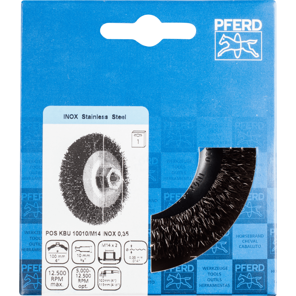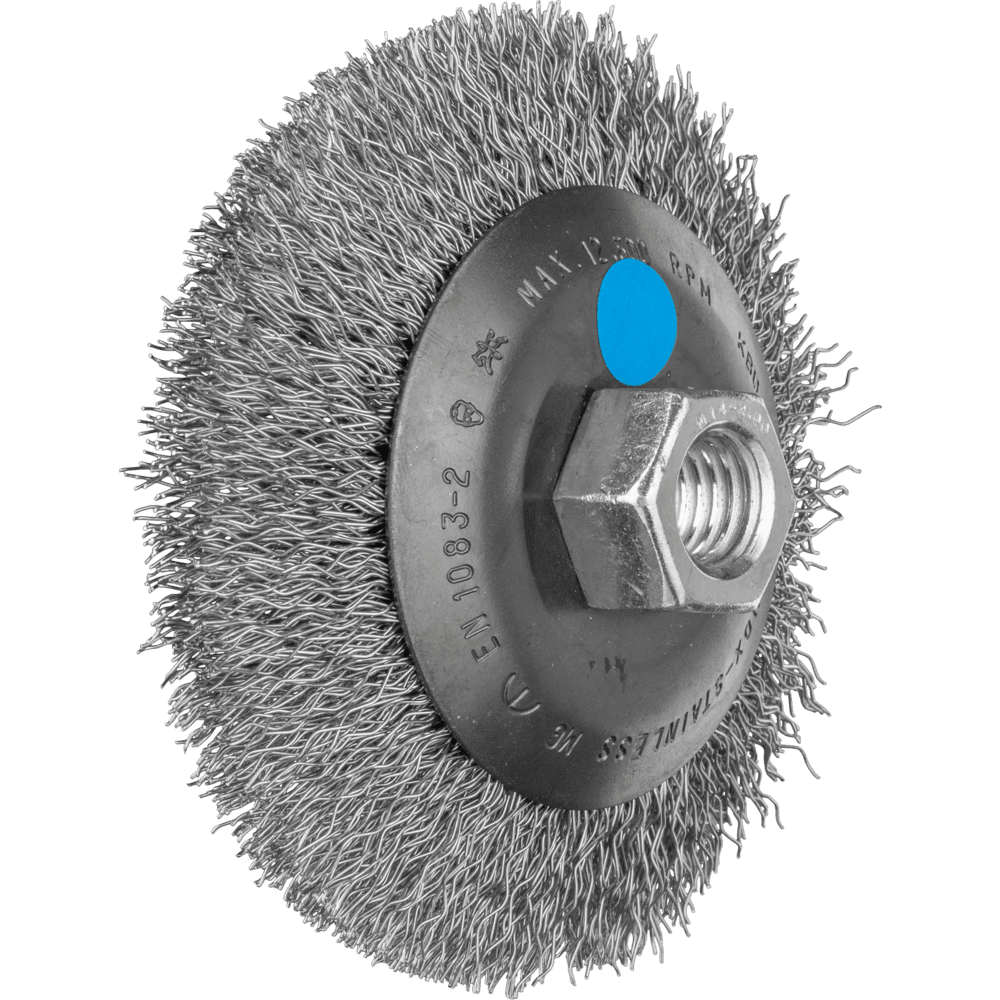 Vynikajúce na stredne náročné čistenie, ako je odhrotovanie, čistenie a odrezávanie hrdze. Aby sa splnili osobitné požiadavky na prácu s nehrdzavejúcou oceľou (INOX), PFERD TOOLS používa drôtovú kvalitu 1.4310 (V2A) pre všetky INOX kefy. Praktické skúsenosti z priemyslu ukázali, že to ponúka veľmi dobrú odolnosť voči korózii s optimálnou životnosťou nástroja. Všetky kefy PFERD TOOLS s INOX vláknami sú farebne označené modrou farbou a sú vhodné na použitie na všetkých nehrdzavejúcich oceľach (INOX), ako je V4A. Drôtová kvalita 1.4310 má tendenciu stať sa feromagnetickou pri studenom spracovaní; t.j. môže byť priťahovaná magnetmi. Dôvodom je zmena mikroštruktúry spôsobená deformáciou (napr. počas procesu ťahania drôtu). To nemá žiadny vplyv na kvalitu a odolnosť voči korózii INOX vlákna. Vlákno je stále odolné voči korózii. Drôt z nehrdzavejúcej ocele (INOX) odoláva teplotám až do 450 °C.
