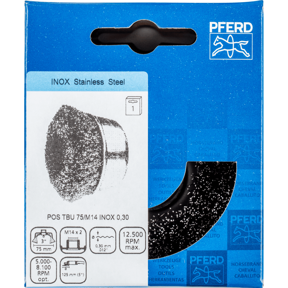 Vynikajúce na stredne náročné čistenie, ako je odhrotovanie, čistenie a odrezávanie hrdze na veľkých plochách. Aby sa splnili osobitné požiadavky na prácu s nehrdzavejúcou oceľou (INOX), PFERD TOOLS používa drôtovú kvalitu 1.4310 (V2A) pre všetky INOX kefy. Praktické skúsenosti z priemyslu ukázali, že to ponúka veľmi dobrú odolnosť voči korózii s optimálnou životnosťou nástroja. Všetky kefy PFERD TOOLS s INOX vláknami sú farebne označené modrou farbou a sú vhodné na použitie na všetkých nehrdzavejúcich oceľach (INOX), ako je V4A. Drôtová kvalita 1.4310 má tendenciu stať sa feromagnetickou pri studenom spracovaní; t.j. môže byť priťahovaná magnetmi. Dôvodom je zmena mikroštruktúry spôsobená deformáciou (napr. počas procesu ťahania drôtu). To nemá žiadny vplyv na kvalitu a odolnosť voči korózii INOX vlákna. Vlákno je stále odolné voči korózii. Drôt z nehrdzavejúcej ocele (INOX) odoláva teplotám až do 450 °C.