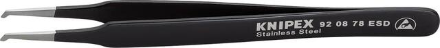 Pinzeta ESD, lomené hroty Provedenie: Z nekorozívnej a antimagnetickej nerezovej ocele. S matovanými úchopovými plochami pre optimálne držanie a neoslňujúcou čiernou ESD povrchovou úpravou s povrchovým odporom 10³ -109ohmov. S neoslňujúcimi kartáčovanými hrotmi. Použitie: Pre jemné montážne práce v elektrostaticky chránených oblastiach (EPA). S hladkými úchopovými plochami a vyhnutými hrotmi. Vhodné pre techniku SMD. Výrobca: KNIPEX-Werk C. Gustav Putsch KG, Oberkamper Str. 13, 42349 Wuppertal, DE, +4920247940, info@knipex.de