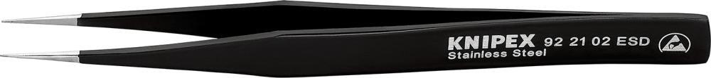 Pinzeta ESD, silné hroty Provedení: Z nekorozivnej a antimagnetickej nerezovej ocele. S matovanými úchopovými plochami pre optimálne držanie a neoslňujúcou čiernou ESD povrchovou úpravou s povrchovým odporom 10³ -109ohmů. S neoslňujúcimi kartáčovanými hrotmi. Použitie: Pre jemné montážne práce v elektrostaticky chránených oblastiach (EPA). S hladkými úchopovými plochami a silnými hrotmi. Výrobca: KNIPEX-Werk C. Gustav Putsch KG, Oberkamper Str. 13, 42349 Wuppertal, DE, +4920247940, info@knipex.de