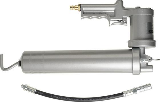 Pneumatický mazací lis Provedenie: Lakované lisované telo z oceľovej trubky, doprava tuku pri každom otváracom uhle ručnej páky. Pre plnenie voľným tukom, 400 g tukovou kartušou podľa DIN 1284 alebo sudová pumpa na mazivo. Spojovací závit M10 x 1. Dodáva sa s pancéřovou hadicou a presnou 4-čelisťovou hubicou. Výrobca: Pressol Schmiergeräte GmbH, Tiergartenstraße 5, 79423 Heitersheim, DE, +4976659346000, service@pressol.com