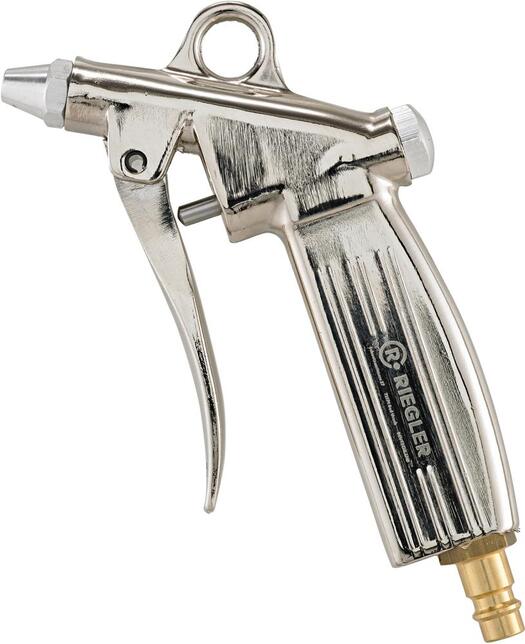 Hliníková ofukovacia pištoľ Provedenie: Telo z poniklovaného hliníkového tlakového odliatku, so štandardnou tryskou. Použitie: Na profukovanie a čistenie strojov, motorov, ložísk, klzných plôch, vývrtu akéhokoľvek druhu, dutých telies a foriem. Výrobca: RIEGLER & Co. KG, Schützenstr. 27-29, 72574 Bad Urach, DE, +49712594970, info@riegler.de