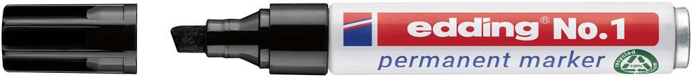 Trvalý popisovač edding č. 1 Vyhotovenie: Vymeniteľný klinový hrot s hliníkovou stopkou (100% recyklovaný hliník). Rýchloschnúci, trvalý atrament bez zápachu, neobsahuje toluén/xylen, odolný proti oderu a vodoodolný, svetlostály a doplniteľný. Použitie: Na popisovanie takmer všetkých materiálov, dokonca aj kovu, skla a plastu. Výrobca: edding Aktiengesellschaft, An der Feldmark 9B, 31515 Wunstorf, DE, +4950311500, info@edding.com