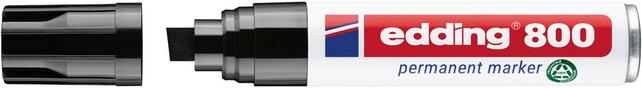 Permanentný popisovač edding 800 Provedenie: Vymeniteľný klinový hrot s hliníkovou stopkou (100% recyklovaný hliník). Rýchloschnúci, permanentný atrament bez zápachu, neobsahuje toluol/xylen, odolný proti oderu a vodoodolný, svetlostály a doplniteľný. Použitie: Na popisovanie takmer všetkých materiálov, dokonca aj kovu, skla a plastu. Výrobca: edding Aktiengesellschaft, An der Feldmark 9B, 31515 Wunstorf, DE, +4950311500, info@edding.com