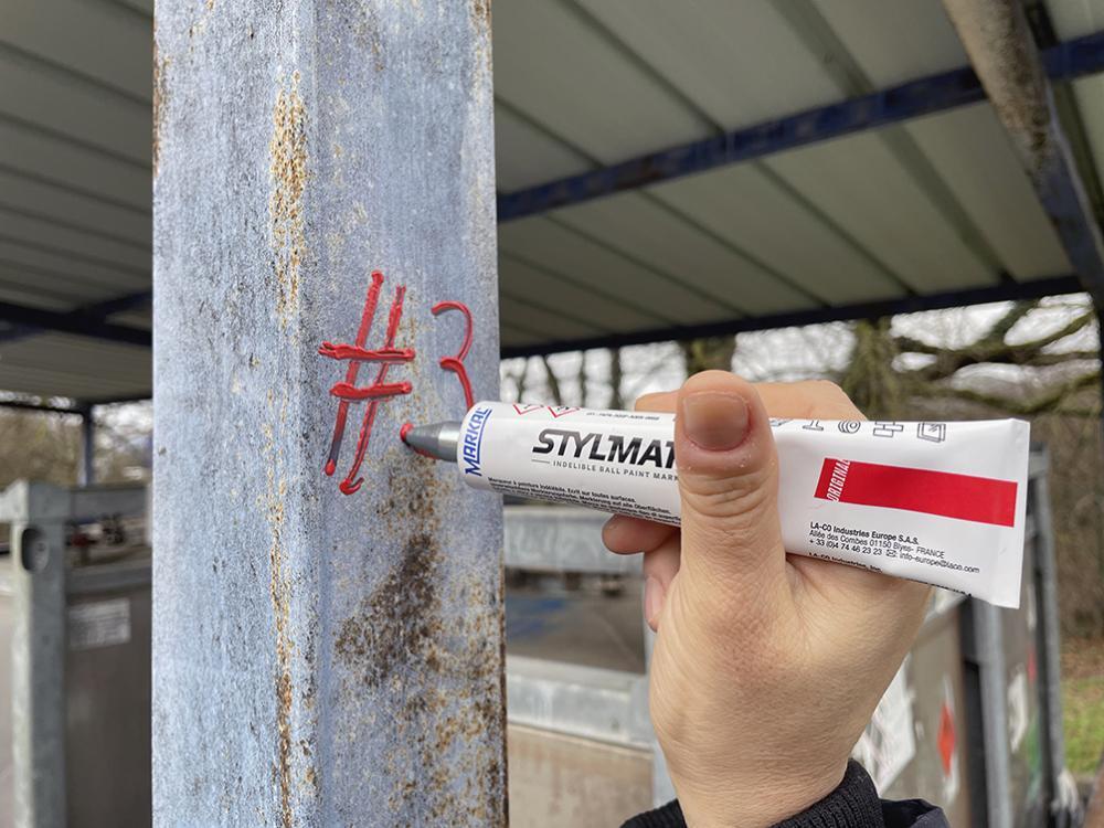 Popisovač v tubě STYLMARK ORIGINAL Provedení: Ocelový kuličkový hrot. Neobsahuje xylen, odolný proti oděru a voděodolný, světlostálý. Tuba je vyrobena z hliníku. Teplotní odolnost značení do 200 °C. Použití: Hustá lakovací barva, která nekape, je vhodná pro značení nad hlavou a na drsné, zaolejované, mastné, rzivé, znečištěné a vertikální povrchy. Výrobce: LA-CO Industries Europe S.A.S., Allèe des Combes, 01150 Blyes, FR, +33474462323, order-europe@laco.com