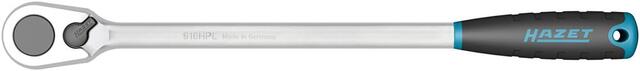 Prepínacia ráčna s jemným ozubením 1/2", 90 zubov Vyhotovenie: DIN 3122 D 12,5 –ISO 3315, s guľôčkovou aretáciou a prepínacou páčkou. Z chrómvanádiovej ocele, leštená a pochromovaná. S oválnou hlavou a prepínacou páčkou. Malý uhol spätného otočenia umožňuje použitie vo stiesnených montážnych priestoroch, napr. v motoroch, v strojárstve, v poľnohospodárskych strojoch a prístrojoch, v oblasti obnoviteľných zdrojov energie (solárne a veterné elektrárne). Test VPA, statický krútiaci moment podľa DIN 3122: 1000 Nm. S ergonomickou 2-zložkovou rukoväťou. Výrobca: HAZET-WERK Hermann Zerver GmbH & Co. KG, Güldenwerther Bahnhofstr. 25-29, 42857 Remscheid, DE, +4921917920, info@hazet.de