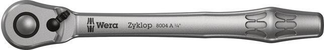 Ráčna 1/4" Zyklop Metal Switch Provedenie: Celokovová ráčna z chrom-molybdénu, kovaná. Jemné ozubenie, s mimoriadne malým uhlom spätného otočenia. Mimoriadne úzka hlava, s dlhou pákou kvôli dobrej prístupnosti v stiesnených priestoroch a prenos vysokých krútiacich momentov, s guľkovou aretáciou pre bezpečné osadenie orechov. Nízka hmotnosť pre vysokú pohyblivosť a veľká robustnosť. S prepínacou páčkou (Switch). Výrobca: Wera Werkzeuge GmbH, Korzerter Str. 21-25, 42349 Wuppertal, DE, +4920240450, sales@wera.de