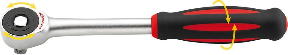 Prostrčná ráčna s otočnou rukoväťou 1/4'' Provedenie: DIN 3122 D 6,3 – ČSN ISO 3315, z chromvanádiovej ocele, pochromované, s guľatou hlavou, prostrkovacím štvorranom, ktorý sa nedá stratiť, a guľkovou aretáciou. 60 zubov, uhol spätného otočenia 6°. Rukoväť s dvousložkovým plastovým návlekom, otočná v oboch smeroch pre úsporu miesta a rýchle ovládanie hnacieho štvorranu. Použitie: Najmä pre práce v stiesnených priestoroch. Výrobca: Einkaufsbüro Deutscher Eisenhändler GmbH, EDE Platz 1, 42389 Wuppertal, DE, +4920260960, webkontakt@ede.de