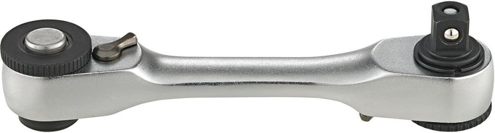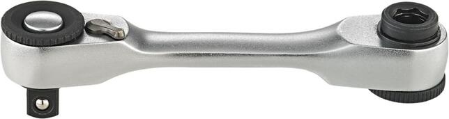 Bitová ráčna Použitie: Z chromvanádiovej ocele, s upínaniami pre 1/4" bity (tvar C a E) a 1/4" hlavice nástrčných kľúčov. Obidve strany disponujú jemným ozubením s 90 zubami s veľmi malým uhlom spätného otáčania iba 4° a praktickým rádlovacím kolieskom pre rýchle ovládanie bitov a hlavicami nástrčných kľúčov. Obidve strany majú prepínaciu páčku pre pravotočivý aj ľavotočivý chod a uvoľňovanie na tlačidlo proti nechcenému povoleniu hlavic a bitov. Výrobca: Einkaufsbüro Deutscher Eisenhändler GmbH, EDE Platz 1, 42389 Wuppertal, DE, +4920260960, webkontakt@ede.de