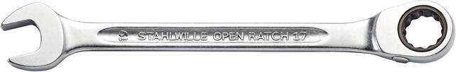 Ráčnový kľúč očkový vidlicový, prepínateľný Provedenie: Presný ozubený ráčnový mechanizmus. Uhol zalomenia čeľuste 15°. Točivé momenty prekračujú hodnoty stanovené podľa DIN 3113. Z ocele legovanej chrómom, pochromované. So 72 zubami a nastavovacím uhlom 5°. Výrobca: STAHLWILLE Eduard Wille GmbH & Co. KG, Lindenallee 27, 42349 Wuppertal, DE, +4920247910, info@stahlwille.de