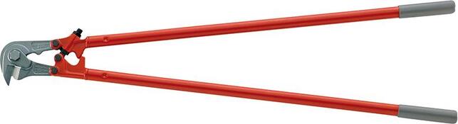 Pákové nožnice na výstuže oceľových konštrukcií Vyhotovenie: So nastaviteľnou a vymeniteľnou rezacou hlavou. Zasekáva sa bez problémov do plošne uložených oceľových konštrukcií. Rúrové ramená lakované. Použitie: Na rezanie guľatého materiálu do 48 HRC. Čepele zo špeciálnej ocele, zápustkovo kované. Doraz s extra dlhým tlmením. Menšia námaha vďaka optimálnej geometrii. Rúrové ramená lakované, rukoväte s plastovými návlekmi. Výrobca: Einkaufsbüro Deutscher Eisenhändler GmbH, EDE Platz 1, 42389 Wuppertal, DE, +4920260960, webkontakt@ede.de