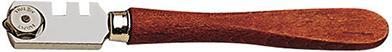 Rezače skla Provedenie: Vymeniteľná tvrdená rozetka, s brúseným kolieskom z tvrdokovu (∅ 5 mm, uhol rezu 135°), poniklovanou hornou časťou a plochou drevenou rukoväťou. Odstup pravítka 2,5 mm. Použitie: Na rovné prírezy plaveného skla, farebného skla alebo ozdobného skla o hrúbke 3 až 6 mm. Výrobca: Bohle AG, Dieselstr. 10, 42781 Haan, DE, +49212955680, info@Bohle.de