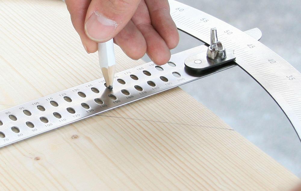 Sada rýsovacích nástrojov Rozsah dodávky: Rýsovacie nástroje 430 x 795 mm Z nerezovej ocele s leptanými stupnicami. Úhelník a štvrt kruhu zvárané bez švov. Rýchle narýsovanie všetkých vyvazovacích prác. Precízne narýsovanie námětkových krokiev, nárožných krokiev a priamych schodov, ako aj dvojitých základiek. Pokosník 500 x 45 x 30 mm Z bukového dreva, rameno so zaoblením, jazyk opatrený zárezom. Pevné polohovanie jazyka pomocou krídlovej matice. Tesařský úhelník 800 x 320 x 1,2 mm Z nerezovej ocele, elastický. S milimetrovým delením a s rýsovačskými dierami. Výrobca: HEDÜ GmbH, Kabelstraße 119-121, 41069 Mönchengladbach, DE, +492161354330, Verkauf@hedue.de