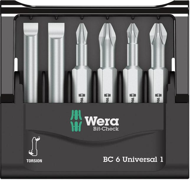 Sortiment bitov Mini-Check, ploché/križové PH/PZ Prevedenie: S húževnatými bitmi v plastovom držiaku. Bity sú prehľadne usporiadané a dajú sa rýchlo a cielene vybrať. Použitie: Pre univerzálne použitie. Výrobca: Wera Werkzeuge GmbH, Korzerter Str. 21-25, 42349 Wuppertal, DE, +4920240450, sales@wera.de