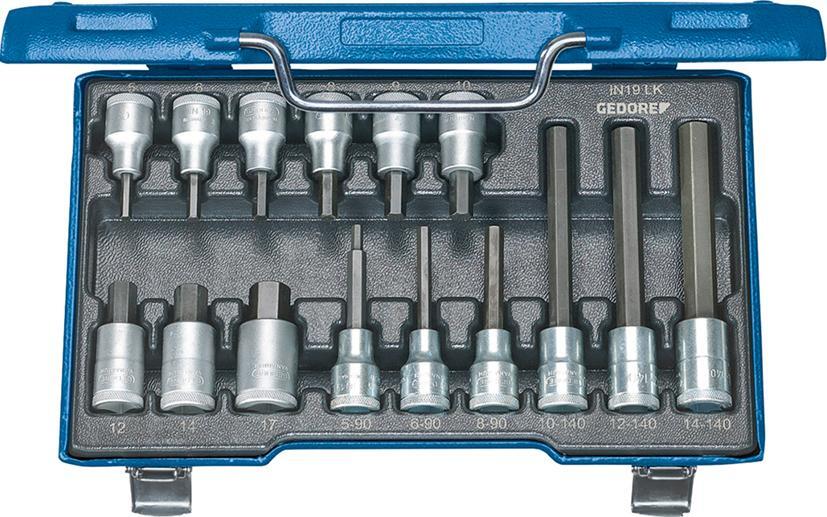 Sada hlavíc skrutkovača 1/2" pre skrutky s vnútorným šesťhranom Vyhotovenie: DIN 7422. Z vanádiovej ocele GEDORE 31CrV3, jemne brúsená, pochromovaná, s drsným krížovým ryhovaním a drážkou pre poistnú guľôčku. Hroty z vanádiovej špeciálnej ocele GEDORE, CrV4, s mangánovým fosfátovaním. Dodáva sa v modrej kazete GEDORIT z oceľového plechu. Obsah sady: 9 hlavíc skrutkovačov pre skrutky s vnútorným šesťhranom 5; 6; 7; 8; 9; 10; 12; 14; 17 mm 6 hlavíc skrutkovačov pre skrutky s vnútorným šesťhranom, dlhé 5; 6; 8; 10; 12; 14 mm Výrobca: GEDORE Werkzeugfabrik GmbH & Co. KG, Remscheider Straße 149, 42899 Remscheid, DE, +492191596900, gedore.empfang@gedore.com