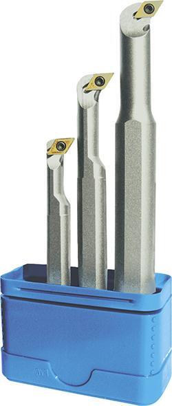 Sada vyvrtávacích tyčí s vnútorným chladením, 93°, A..-SDUCR/L, odsadená stopka Provedenie: Vyvrtávacia tyč pre vymeniteľné rezné dosky 7° pozitívne, skrutkové upnutie, držiak nástrojov poniklovaný. Dodávame sadu à 3 kusy bez vymeniteľných rezných dosiek, bez skrutkovača. Použitie: Vnútorné sústruženie. Výrobca: Einkaufsbüro Deutscher Eisenhändler GmbH, EDE Platz 1, 42389 Wuppertal, DE, +4920260960, webkontakt@ede.de