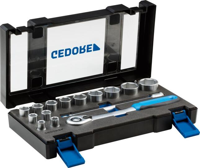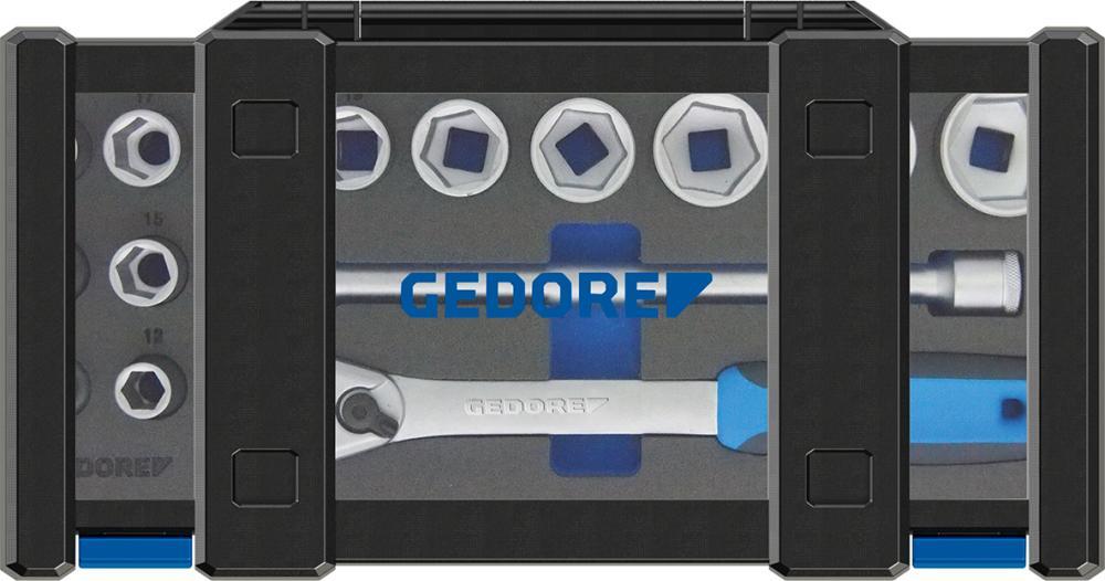 Sada nástrčných kľúčov 1/2", šesťhran Provedenie: Náradie z vanádiovej ocele GEDORE 31CrV3, kované, brúsené a pochromované. Dodáva sa v modrej kazete z oceľového plechu GEDORIT so zahnutým, plynule ťahaným okrajom a ABS plastovou vložkou. Výrobca: GEDORE Werkzeugfabrik GmbH & Co. KG, Remscheider Straße 149, 42899 Remscheid, DE, +492191596900, gedore.empfang@gedore.com