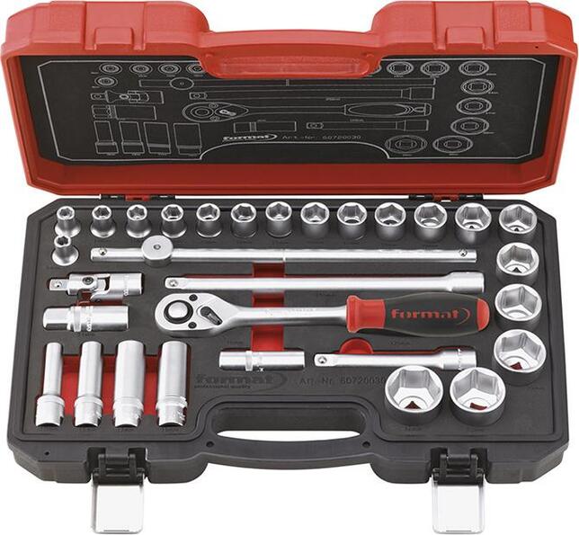 Sada šesťhranných nástrčných kľúčov 1/2" Provedenie: Náradie vyrobené z chrómovanej vanádiovej ocele, matne pochromované, vložky nástrčných kľúčov s rádlovaním, inbusy a štvorkrát majú zaoblené rohy kvôli ochrane trnu a hlavy skrutky. Ráčna s prepínacou páčkou má 72 zubov, uhol spätného otočenia 5°, 2-zložkovú plastovú rukoväť. Dodáva sa v robustnom plastovom boxe so schematickým prehľadom uloženia vo veku. Náradie je stabilne uložené v 2-barevnej penovej vložke, a teda je možné okamžite zistiť, ktoré náradie chýba. Výrobca: Einkaufsbüro Deutscher Eisenhändler GmbH, EDE Platz 1, 42389 Wuppertal, DE, +4920260960, webkontakt@ede.de