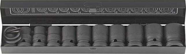 Sada nástrčných kľúčov (výkovky za tepla) 1/2" Provedenie: Z chrómovanej molybdénovej ocele, fosfátovaná. Dodáva sa v skrinke z oceľového plechu. Výrobca: Einkaufsbüro Deutscher Eisenhändler GmbH, EDE Platz 1, 42389 Wuppertal, DE, +4920260960, webkontakt@ede.de