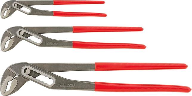 Sada kleští SIKO Provedenie: DIN ISO 8976. Kované z chromvanádiovej vysoko zušľachtenej ocele. Čeľusť brúsená. Posuvný priechodný čap umožňuje vysokú stabilitu vďaka dvojitému vedeniu. Ochrana proti priskruteniu zabraňuje zraneniam spôsobeným priskrutnením. Samosvorné na trubkách a maticiach. Rukoväte s plastovými návlekmi. Dodáva sa v kartóne. Výrobca: Einkaufsbüro Deutscher Eisenhändler GmbH, EDE Platz 1, 42389 Wuppertal, DE, +4920260960, webkontakt@ede.de