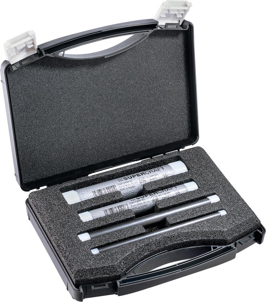 Sada prieboj/vyklepávač Provedenie: Vložky z tvrdého, bieleho nylonu na oboch stranách. Od Ø hlavy 20 mm bez spätného rázu. Dodáva sa v plastovom kufríku. Použitie: Pre obzvlášť jemné narovnávacie a montážne práce s presne dávkovaným účinkom úderu. Výrobca: Erwin Halder KG, Erwin-Halder-Str. 5-9, 88480 Achstetten-Bronnen, DE, +49739270090, info@halder.de