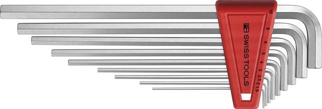 Sada imbusových kľúčov, dlhých Provedenie: DIN 911L, ČSN ISO 2936. Z vysoko legovanej pružinovej ocele, zakalené a pochromované. Konce kľúčov rovné. Dodávame v ručnom držadle. Výrobca: PB Swiss Tools AG, Bahnhofstrasse 24, 3457 Wasen/Bern, CH, +41 34 437 71 71, info(at)pbswisstools.com