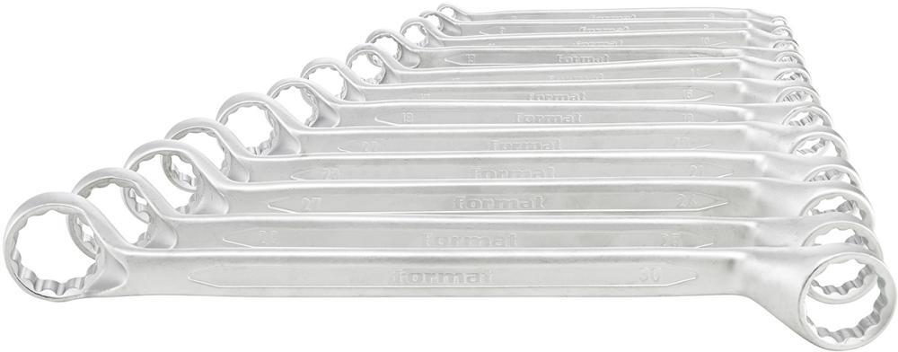 Sada obojstranných očkových kľúčov, zahnutých Provedenie: DIN 838, ISO 3318. Z chrómvanádiovej ocele, matne chrómované, hlbokým vyhnutím. Leštené očká. Úchopný, oválny dřík. Dodáva sa v kartóne. Výrobca: Einkaufsbüro Deutscher Eisenhändler GmbH, EDE Platz 1, 42389 Wuppertal, DE, +4920260960, webkontakt@ede.de