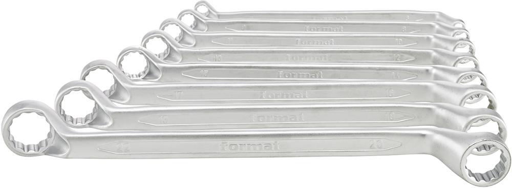 Sada obojstranných očkových kľúčov, zahnutých Provedenie: DIN 838, ISO 3318. Z chrómvanádiovej ocele, matne chrómované, hlbokým vyhnutím. Leštené očká. Úchopný, oválny dřík. Dodáva sa v kartóne. Výrobca: Einkaufsbüro Deutscher Eisenhändler GmbH, EDE Platz 1, 42389 Wuppertal, DE, +4920260960, webkontakt@ede.de