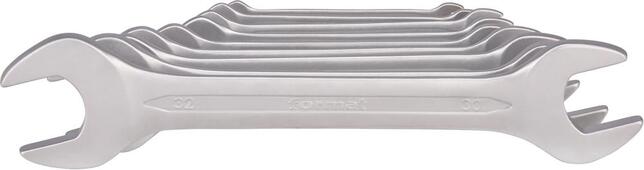 Sada obojstranné vidlicové kľúče Provedenie: DIN 3110, ISO 3318. Matne pochromované, čeľuste zalomené pod uhlom 15°, s plochými hlavami. Dodáva sa v kartóne. Kovaná chrómvanádiová oceľ. Úchopný, oválny dřík. Výrobca: Einkaufsbüro Deutscher Eisenhändler GmbH, EDE Platz 1, 42389 Wuppertal, DE, +4920260960, webkontakt@ede.de