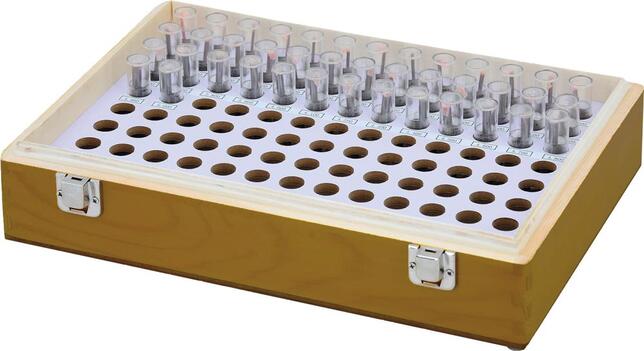 Sada meracích kolíkov, trieda tolerancie 2 Vyhotovenie: Z vysoko kvalitnej nástrojovej ocele po špeciálnom legovaní a niekoľkonásobnom umelom starnutí. Tvrdé (62 ± 2 HRC), popustené a veľmi presne brúsené. Použitie: Stupnicové šablóny pre indikačné meracie zariadenia, na kontrolu rozteče osí, kuželov a ostatných obrobkov v spojení s koncovými mierkami za účelom detekcie priemeru odstupu závitov alebo priemeru úkosu priemeru ozubenia ozubených kolies. Trieda tolerancie 2. Výrobca: Einkaufsbüro Deutscher Eisenhändler GmbH, EDE Platz 1, 42389 Wuppertal, DE, +4920260960, webkontakt@ede.de